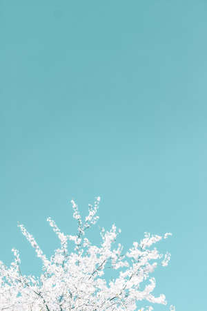 Cherry tree blossoming flowers with soft petals on natural floral background
