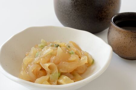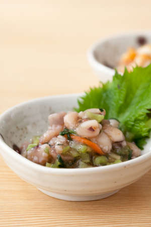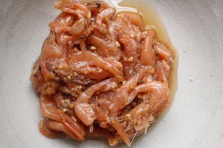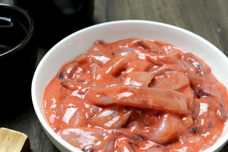 Shiokara squid dish, squid marinated in salt.