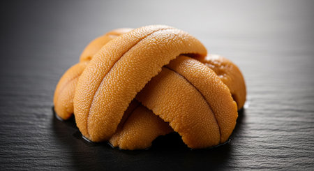 A Close Up of Fresh Sea Urchin Roe Uni on a Slate Plate