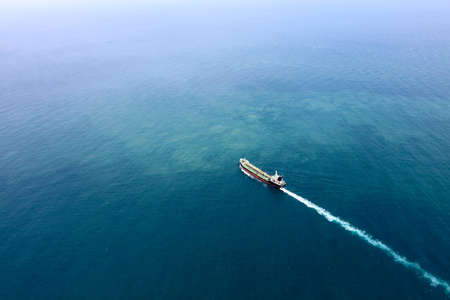 Motor tanker at oversea transport oil using their own engine full speed.