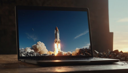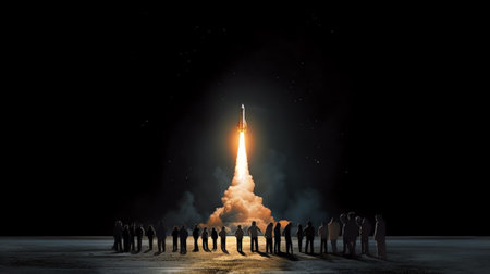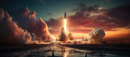 Embark on a journey of innovation and ambition with this captivating image. A rocket launch symbolizes the spirit of startups and the dynamic nature of the business world. This concept captures the excitement and determination that drive entrepreneurs and their quest for success. The fiery propulsion of the rocket represents the power of ideas and the drive to reach new heights. Perfect for projects related to startups, entrepreneurship, business concepts, technology, innovation, and the pursuit of ambitious goals