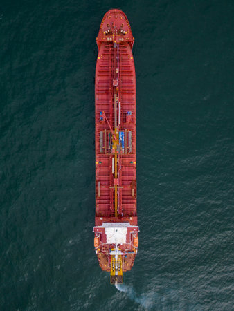 Aerial top view of Large general cargo ship bulk carrier