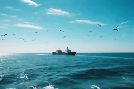 AI generative image of cargo ship sailing through the open sea at sunny day