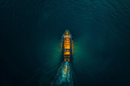 Cargo ship sailing in calm sea waters, created using generative ai technology
