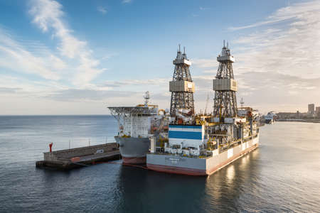 Santa Cruz de Tenerife, Canary Islands, Spain - Desember 11, 2016: Drilling ships ENSCO DS 5 & DS 4 in the harbour of the Santa Cruz de Tenerife, Canary Islands, Spain.