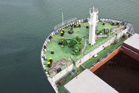 Detail of the bow of a ship in the open sea.