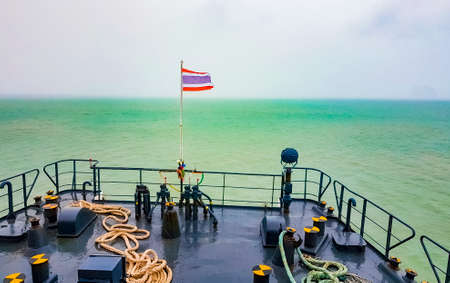 Travel to Don Sak over turquoise water in tropical landscape via ferry Surat Thani Thailand.
