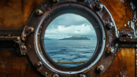 Beautiful Sea View Through an Old Ship's Porthole. High quality photo