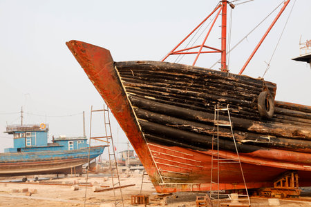 DHAKA, BANGLADESH - August 12: Local workers are working to repair ships in dockyard on August, 12, 2016 in Dhaka, Bangladesh