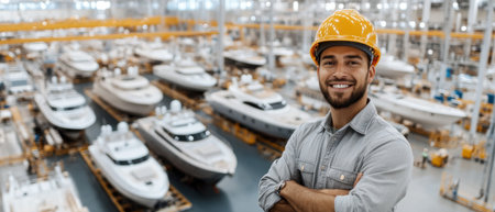 Boat assembly plant. Boat manufacturer. Boat factory. Generative AI