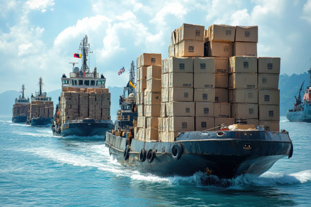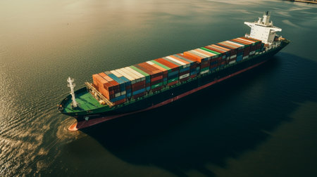 Commerce trade logistic oversea worldwide by container cargo ship boat in the open sea. Container vessel ship leaving the port. AI-Generated image