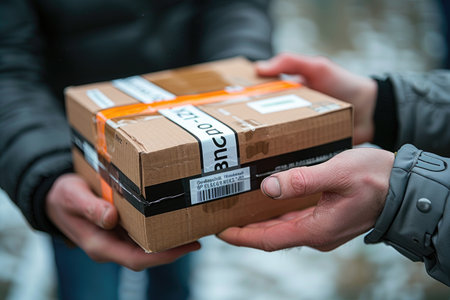 Delivery to your door step. a unrecognizable man delivering a package to a customer at home.