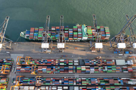 Aerial view of colorful container terminal, trade Industry Hong Kong China