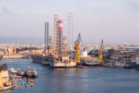 Part of the Grand Harbour of Malta showing the cranes in the dry dock.
