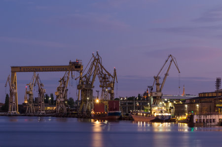 SZCZECIN, WEST POMERANIAN / POLAND - 2020: Docks, cranes, slipways and shipyard quays