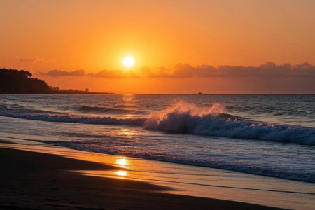 Sunset waves of golden beaches, golden wonders at sea level