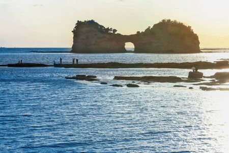 Sandstone rock formations and clear blue waters at Tatsukushi coast - a natural scenic landmark near Tosashimizu, Kochi prefecture, Japan