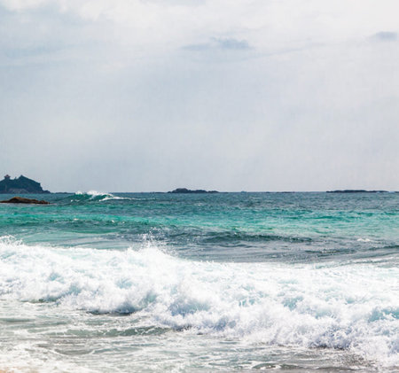 sea At the beach there are sand and beautiful sea waves.