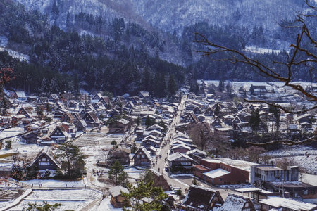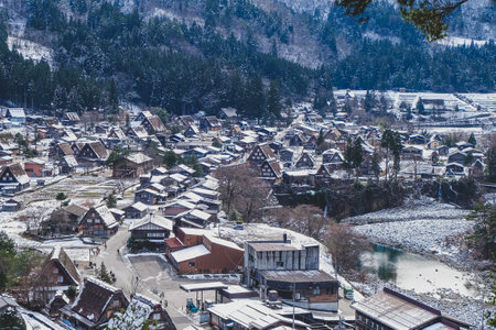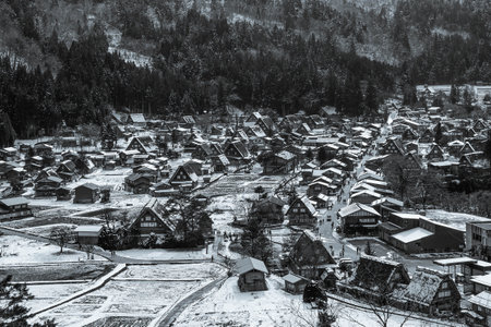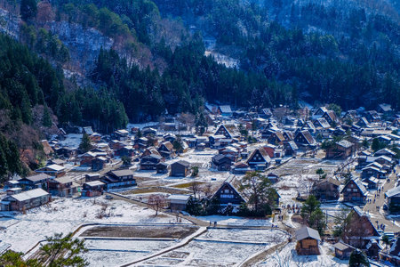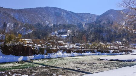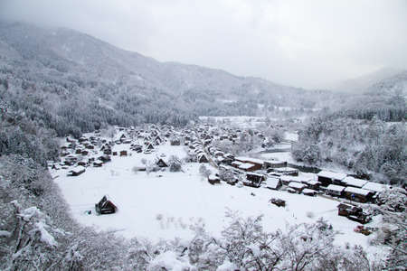Beautiful landscape around Historic Villages of Shirakawa-go in a snowy day