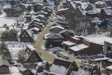 Shirakawa-go a small village in Japan has snow all over the village.