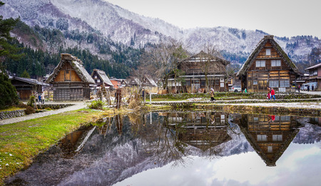 Gifu, Japan - Dec 28, 2015. People visit Historic Village of Shirakawago in Gifu, Japan. In December 1995, Shirakawago was registered as a UNESCO World Heritage Site.