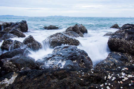 Coastal twilight scene, Long Exposure of rocks and waves at sunset, Landscapte, Background