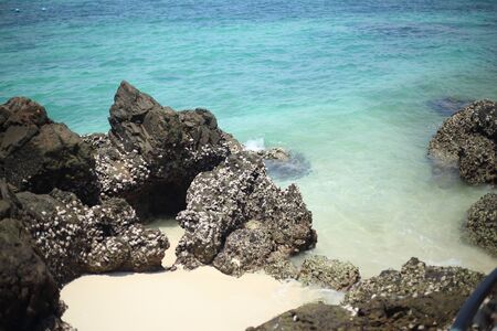 Rocky corner at tropical Paradise island Koh Phayam Aow Yai Beach landscape panorama view in Ranong Thailand.
