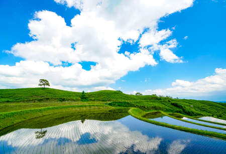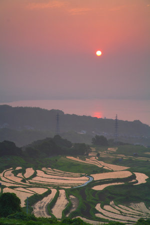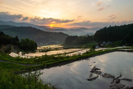 Superb View of Japan, Landscape of Rice Terraces in the Evening.