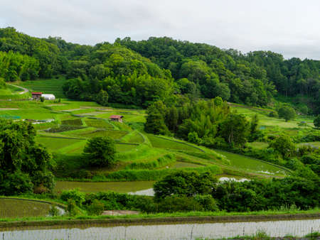 terraced rice field in Yamakoshi, Nagaoka, Niigata, Japan
