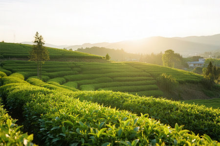 Tea Plantation at Sunrise, Chiang Rai Province, Thailand.
