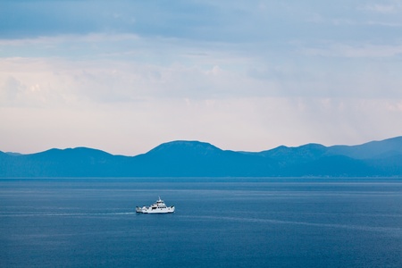 Boat Passing Island of Brac in the Rainy Morning, Croatia