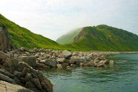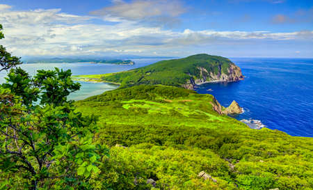 Landscape photo with sea bay on the island of Sakhalin.