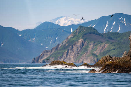 The east coastline of the Avacha bay, Pacific ocean. Kamchatka peninsula, Russia