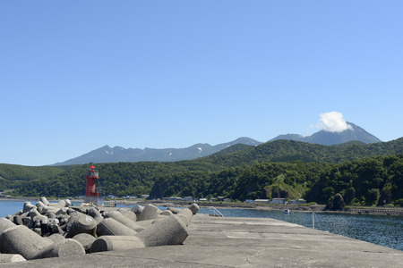 Rausu lighthouse on the cliff along Shiretoko Peninsular, Hokaido Island, Japan.