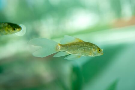 A couple of Fathead minnow (Pimephales promelas), which is commonly known as the rosy-red minnow, swimming in a densely planted tropical fish tank