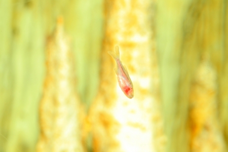 golden tetra fish swimming in a freshwater aquarium with green plants