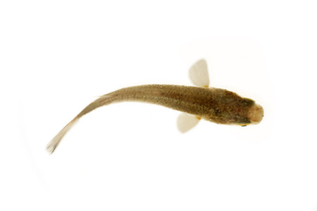 A few months old mullet fry (probably a striped mullet). The Sea of Azov, early November. top view, isolated on white