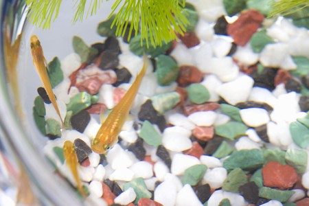 Small Colourful Fish in Aquarium With Stone and Green Plants