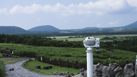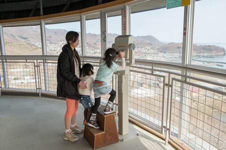 Binocular or telescope locate on viewpoint of Toya Lake for support traveler use looking for tropical view at Hokkaido, Japan.