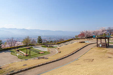 Nagano, Japan - April 20, 2019 : Unidentified people visit Kobo mountain cherry blossom full bloom in Matsumoto of Nagano Japan.