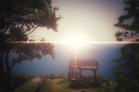 Ashizurimisaki, Japan - April 8, 2018: Cape Ashizuri viewing platform in the morning