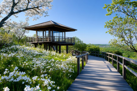 Observatory tower and East Asian seepweed field. Autumn of Gaetgol Eco Park in Siheung, Korea