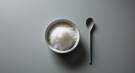 AI Generated. Agar Agar Powder Bowl Spoon Grey Table Top View