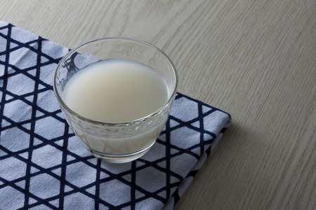 Traditional japanese ceramic on rustic wooden background. Soft focus. Copy space.