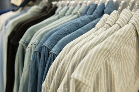 Stylish shirts hanging in a clothing store