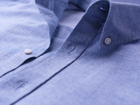 Closeup of a blue shirt with buttons, shallow depth of field