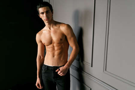 Portrait of handsome muscular and sexy man wearing jeans