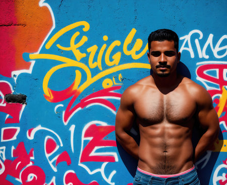 A man standing in front of a graffiti wall.