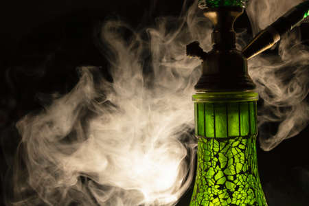 Hookah with fume on dark background