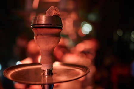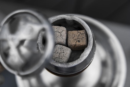 Close-up of a top of hookah with coconut coal.